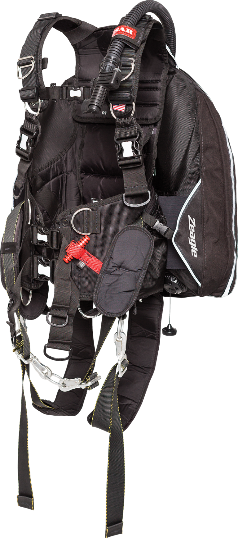 The SAR BC, along with the 911 BC, was introduced in 1997 in response to many requests from Public Safety divers for systems designed to fit their needs. Identical to the 911, except for the addition of a permanently installed lifting harness for helicopter, cliff or swiftwater work.