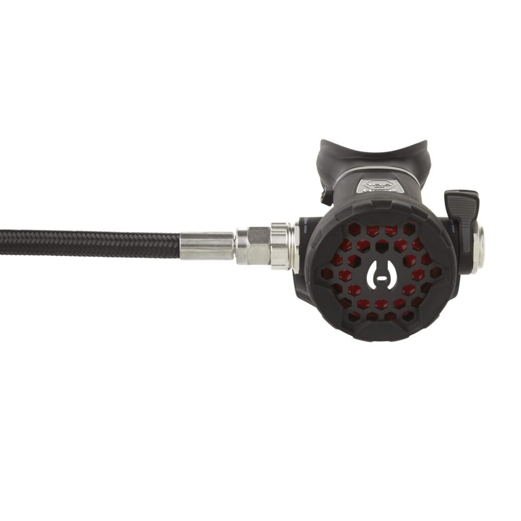The 100LX has the performance of the 150LX, but is paired with the DC3 for a great value regulator. All LX regulators come standard with MiFlex® hoses and orthodontic mouthpieces with dual color tabs. It comes standard in both YOKE or DIN configuration. The LX regulators come standard with Hollis’s Lifetime Warranty, 2-Year Service Interval and Free Parts for Life